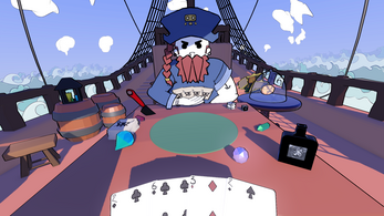 Crooked Deck is a game where a pirate captain invites you to gamble around a game of cards. The captain is a stickler for rules, but in this game, playing by them is probably not the play. Will you play or get played?